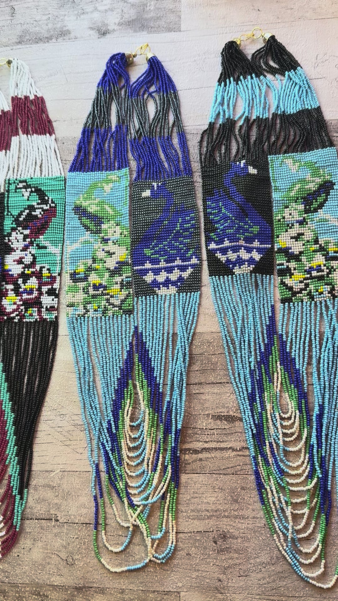 Beautiful handmade ethnic necklaces. Multi strands, with a peacock design on one side, and swan on the other.