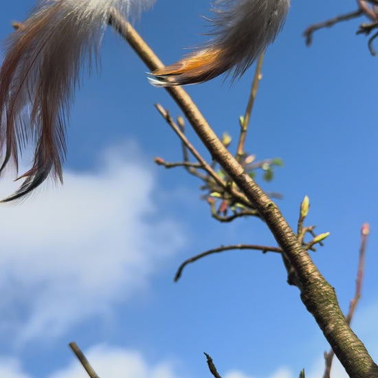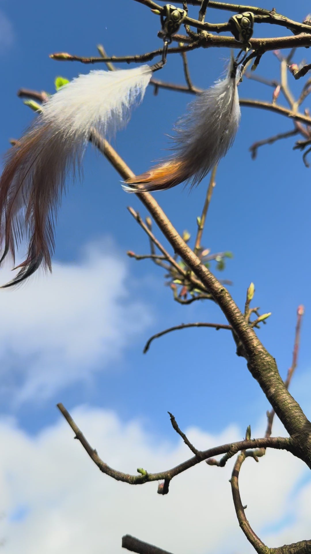 One pair of feather dreadlock charms. The feathers have come from my own cockerel.