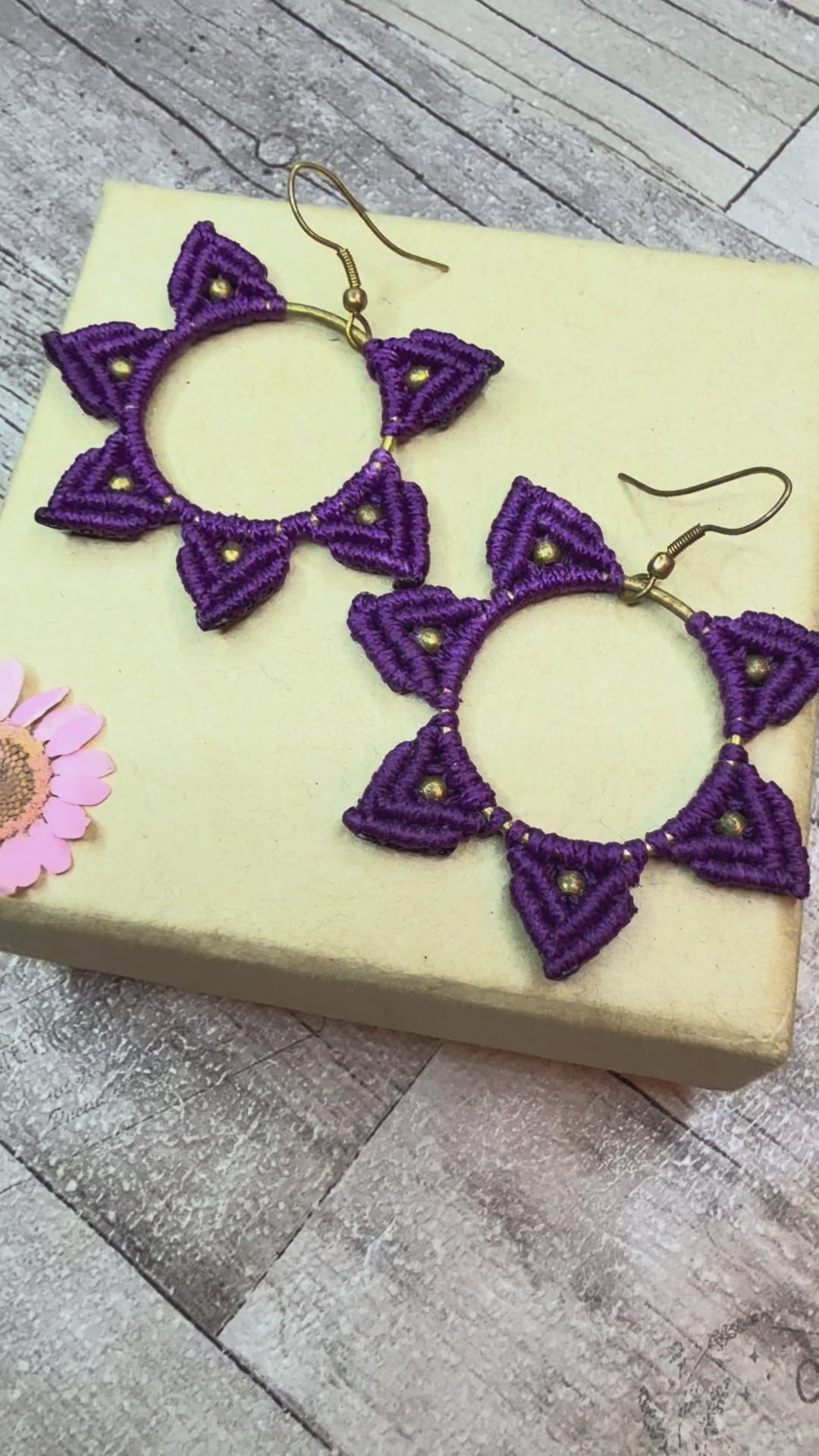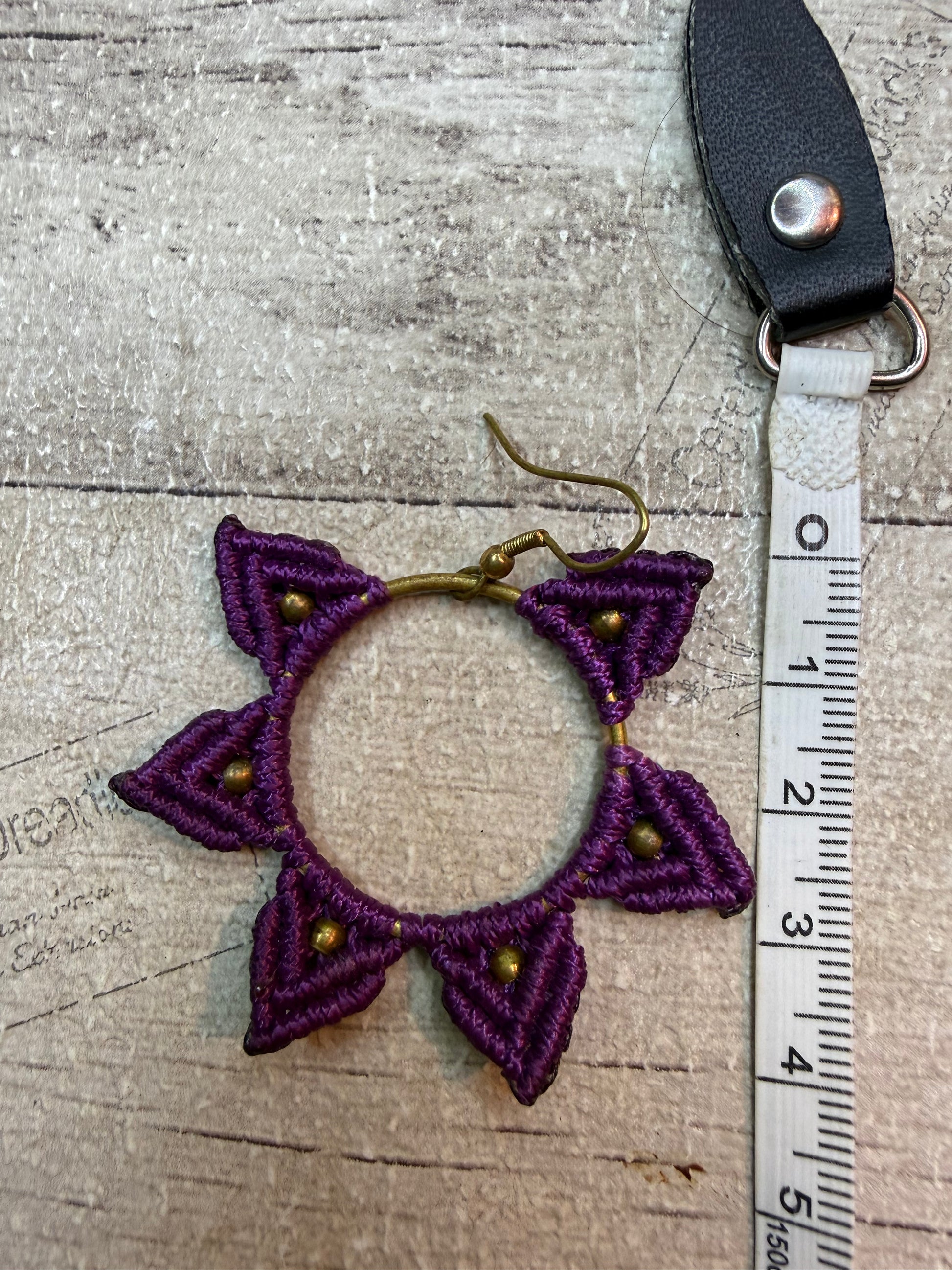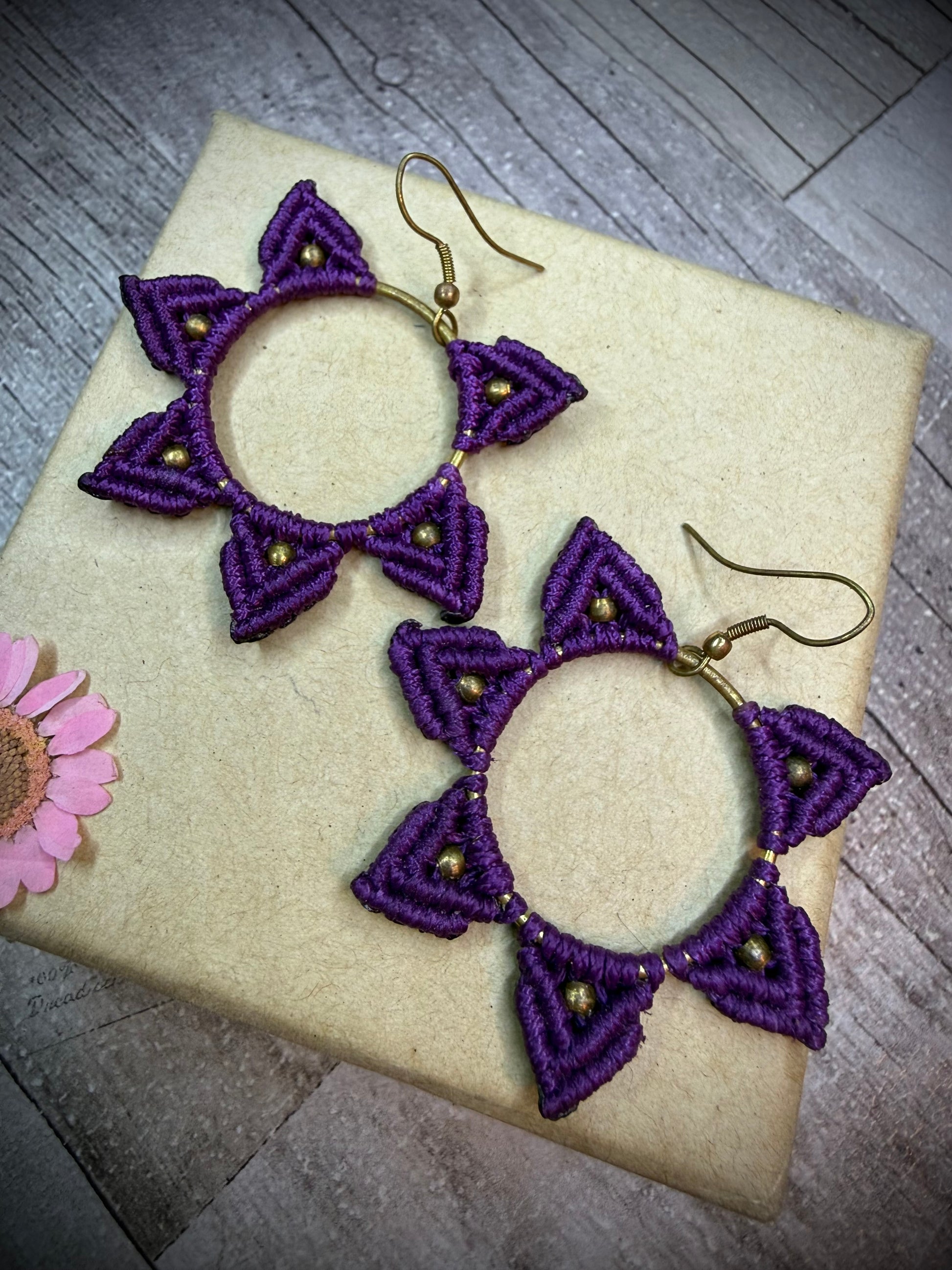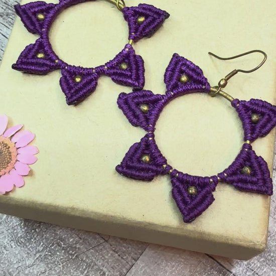 Purple Macrame Hoop Earrings