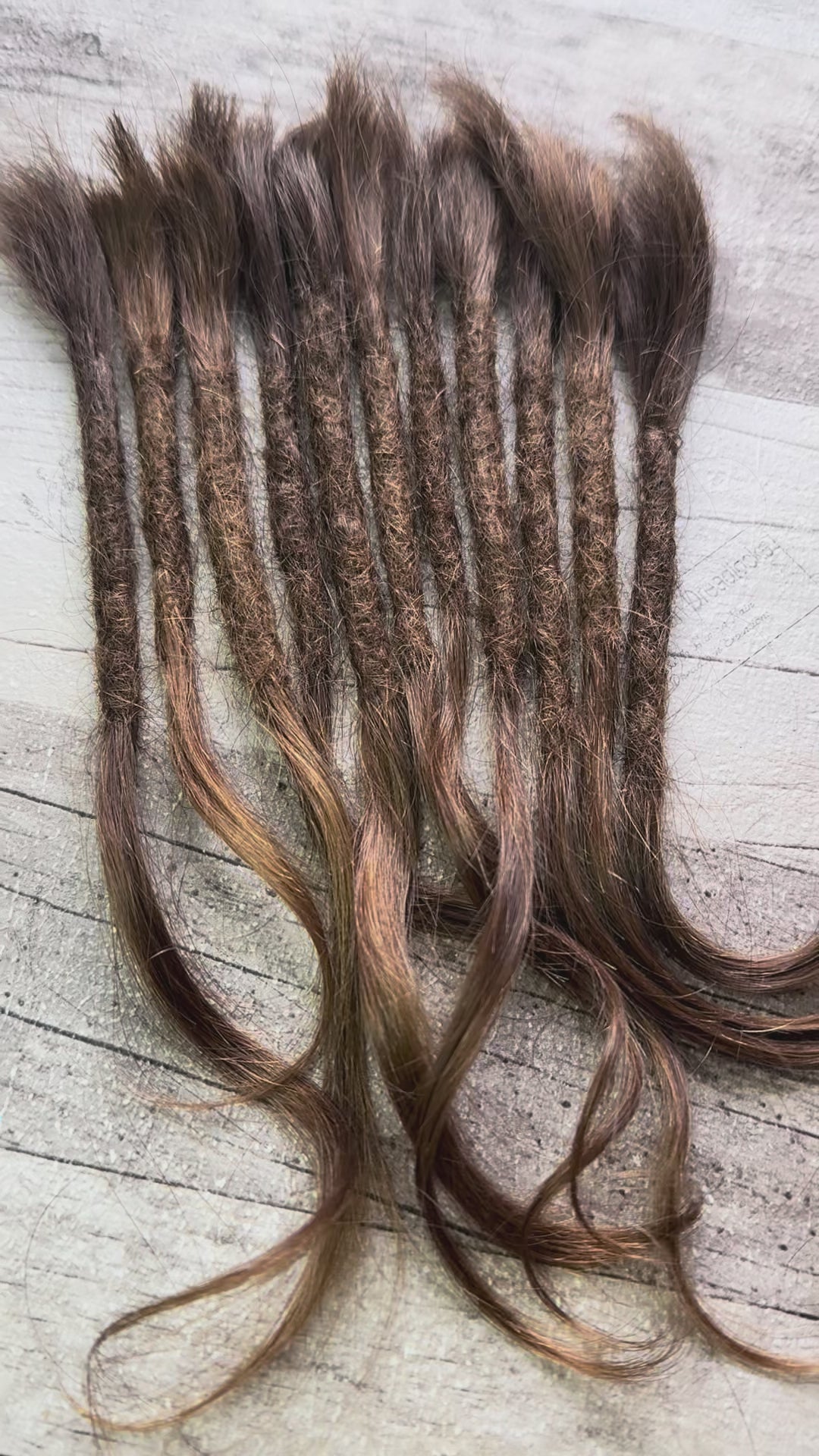 x11 pieces made from Raw, 100% human hair cut straight from the head. This hair is ethically sourced, and has never been dyed. Please see last photo of before the hair was locked up.