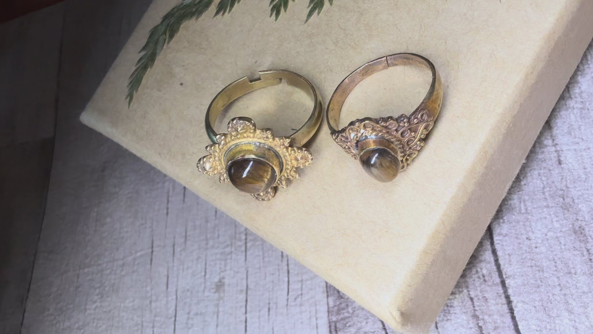 A beautiful pair of adjustable rings, I believe they’re brass. In a lovely vintage style.